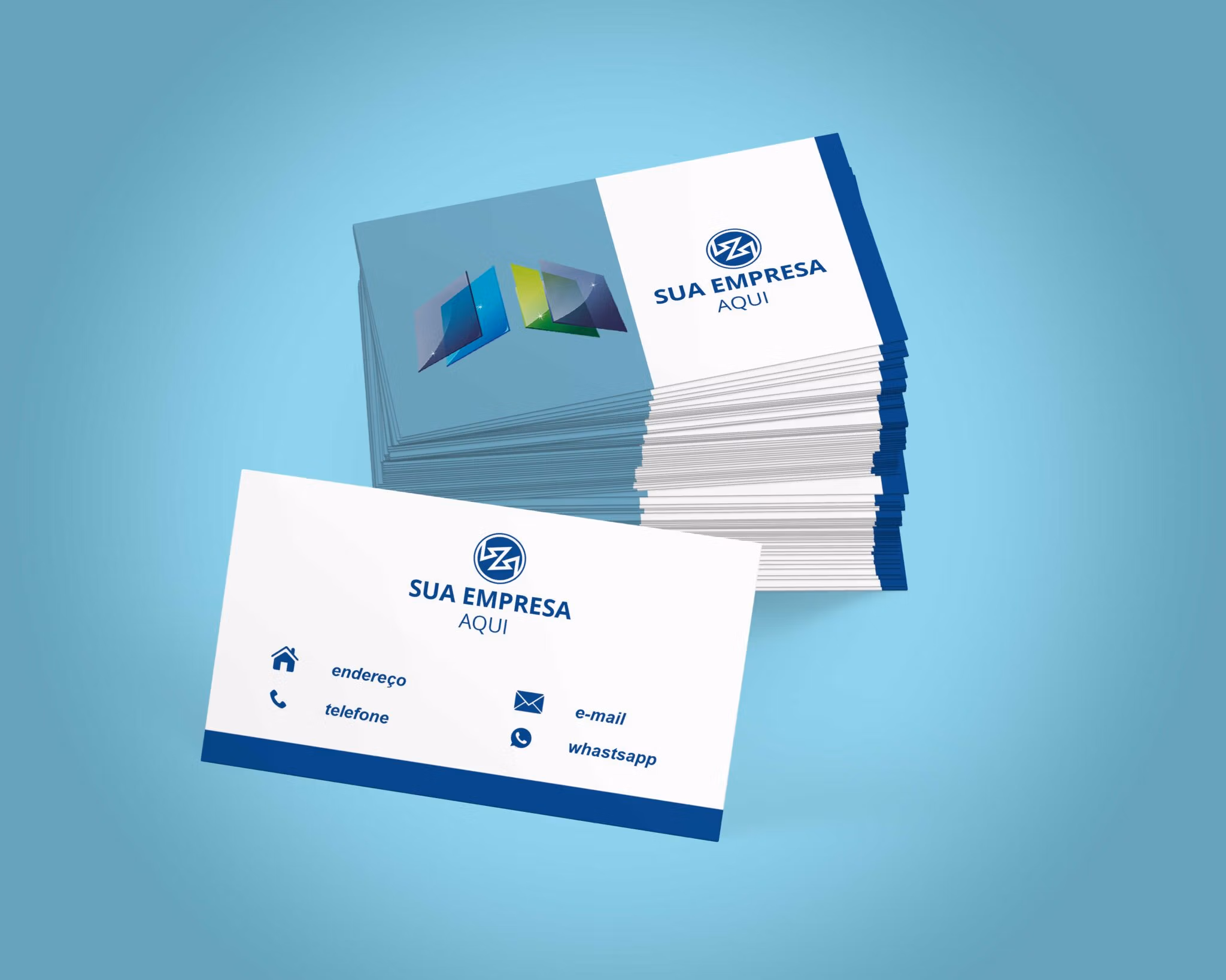 Nessa opção, você está adquirindo um dos modelos prontos do Criativo AZ + edição onde você envia seus dados como (Nome, E-mail, Telefone, Celular, WhatsApp, Endereço) para editarmos, caso tenha o seu logo em formato EPS editável e você recebe um arquivo PDF, como também em EPS que pode ser editado com Corel Draw ou com Adobe Illustrator, para que a gráfica possa colocar no gabarito dela, OBS: não colocamos em nenhum gabarito.
